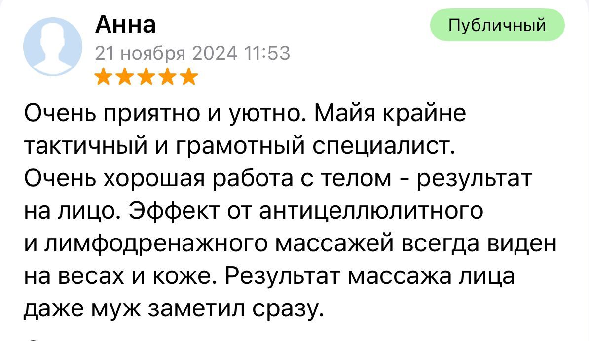 Меня зовут Майя и я пришла в массаж в 2015 году.