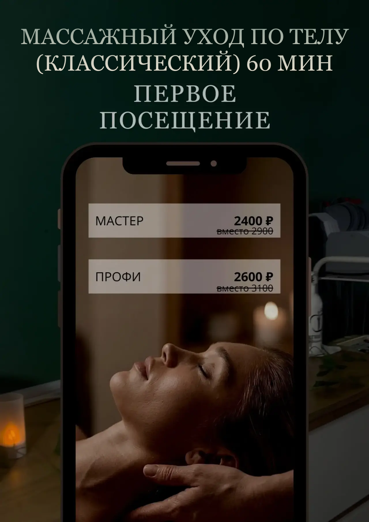 | Массажный уход по телу (солевой) 60 мин | 2950/3150₽ |